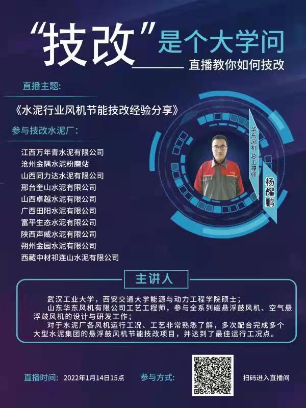 虽然,现在大家都知道了麻豆传媒操逼视频的优点,那么是不是所有的水泥厂都可以更换为磁悬浮风机呢?水泥企业在选择磁悬浮风机时应该注意什么?日常应该怎样维护和保养磁悬浮风机呢?上面的这几个问题其实也是水泥厂的决策层和各个部门所关心的问题。带着这些问题,本周五(1月14日)15:00,拥有丰富的水泥厂节能技改经验的麻豆影视在线风机总工程师杨耀鹏将做客水泥内参的直播间,和大家一起聊一聊“能耗双控”的大背景下,水泥行业风机节能改造那些事!